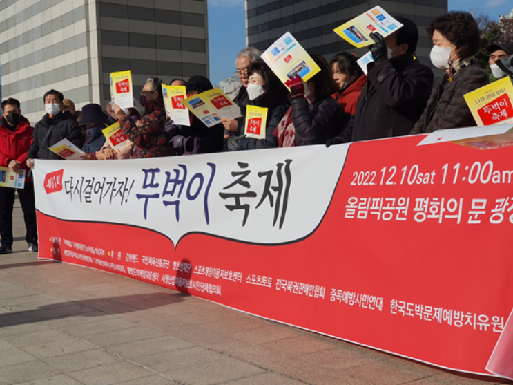 후원단체 도박을반대하는시민단체협의회 공동대표 김영일목사는 사행산업과 게임사업자들이 이용자보호를 위한 안전장치 마련과 회복자의 사회복귀를 위한 자활지원에 앞장서 줄 것을 촉구했다. 이날 행사에는 한국도박문제치유예방원직원이 직접 참석하여 후원물품 전달과 걷기행사에 동참했다. 한편 중독회복자 가정에 후원물품 김장김치와 쌀이 온라인 배송된다.