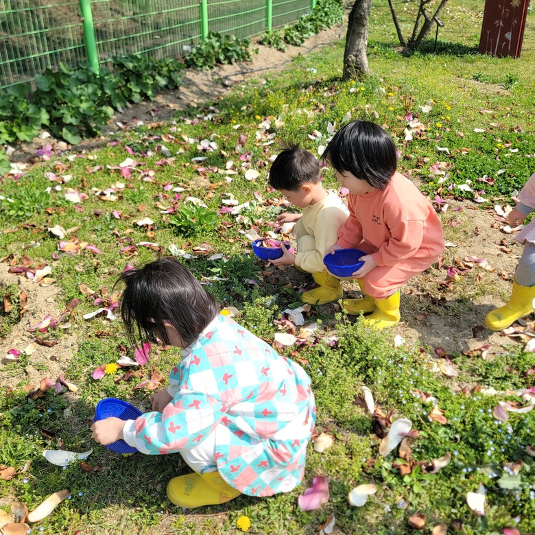 이번 봄꽃 놀이 주간은 유아들이 인공적으로 만들어진 장난감과는 다르게 가지각색으로 자유롭게 활용할 수 있는 자연물의 매력에 흠뻑 빠지는 기회가 되었다. 또한 이러한 경험들을 통해 유아들은 스스로 독창적인 놀이를 생각해 내고 놀이를 주도적으로 이끌어가는 놀이 주도성 및 창의성을 기르게 될 것이다.
