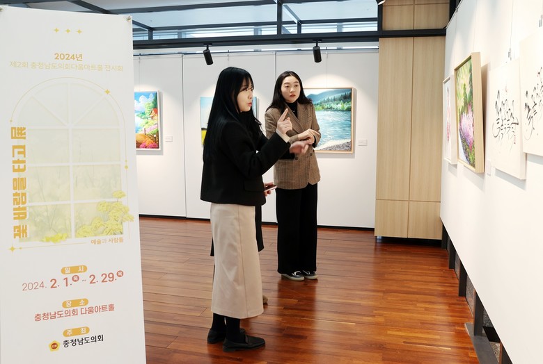 조길연 의장(부여2·국민의힘)은 “다양한 장르의 아름다운 작품세계를 선사하는 예술과사람들 회원님들의 앞날에 더 큰 발전이 있기를 기원한다”며 축하하고 “앞으로도 좋은 작품 전시를 통해 다움아트홀을 도민과 함께 어울림할 수 있는 공간으로 만들겠다”고 말했다.