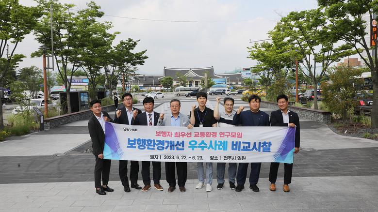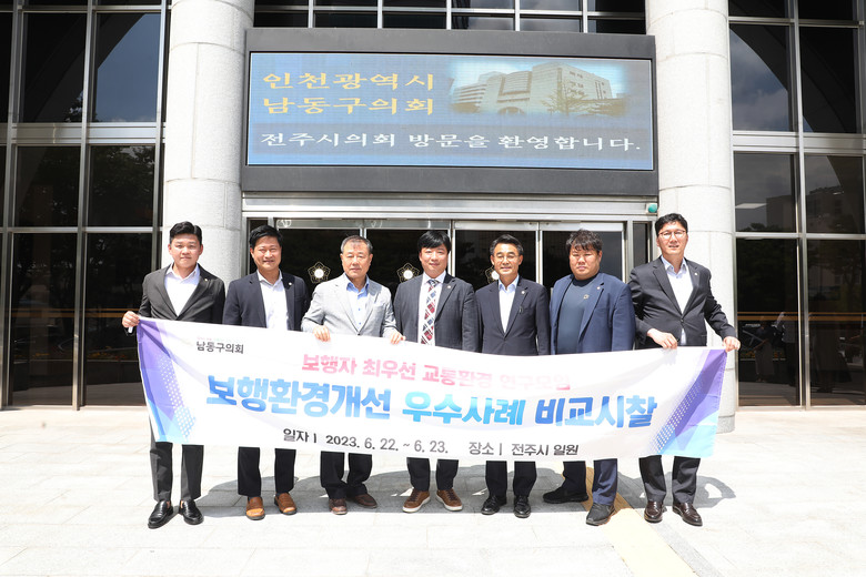 [남동구 세계타임즈=심하린 기자] 남동구의회 의원연구단체 『보행자 최우선 교통환경 연구모임』(회장 황규진의원) 소속 의원들이 지난 22일부터 23일까지 1박 2일 동안 전북 전주시 일원의 보행환경개선 우수사례를 벤치마킹했다.