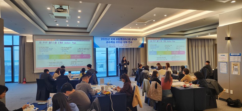 이번 연수는 IB PYP 월드스쿨 교감, 코디네이터, 교육과정부장 등 38명이 참여한 가운데 5년 주기 프로그램 평가 계획 수립과 실행 방안을 집중적으로 다룬다. 특히 IB 프로그램의 지속성과 질 관리 방안을 구체화하는 데 중점을 뒀다.