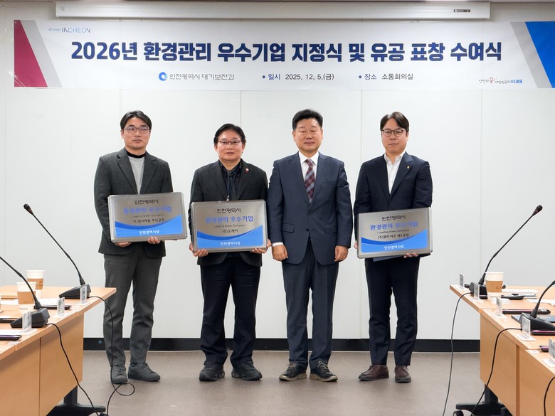 [인천 세계타임즈=심하린 기자] 인천광역시(시장 유정복)는 12월 5일 시청 소통회의실에서 ‘2026년 환경관리 우수기업 지정식 및 유공 표창 수여식’을 개최했다고 밝혔다.