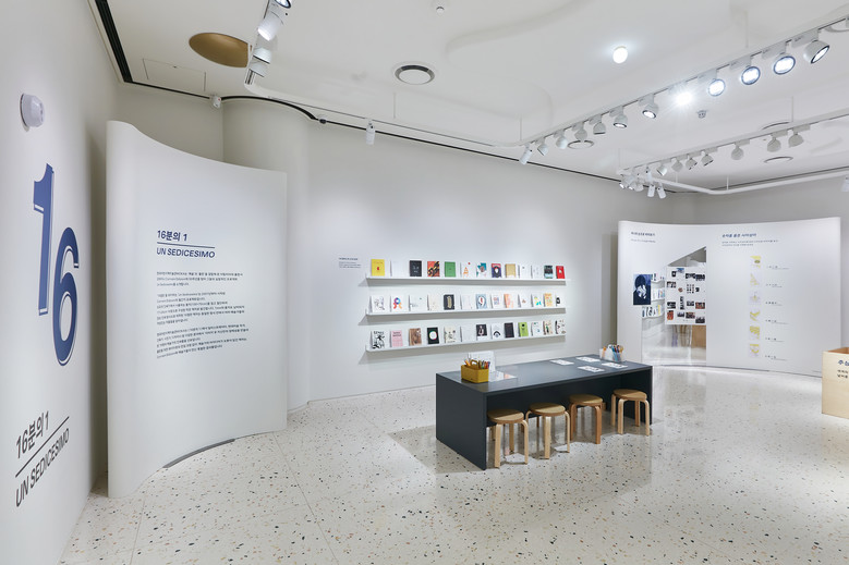 '16분의 1' 전시에서는 그래픽 디자이너, 사진가, 화가 등의 작품을 다루는 아티스트북으로 유명한 이탈리아 출판사 꼬라이니(Corraini Edizioni)의 작품 80권을 선보인다. '운 세디체시모(Un Sedicesimo)'를 테마로 인쇄기에서 사용하는 종이를 접고 절단해 16장으로 만든 작은 책자를 전시한다.