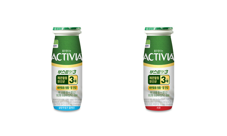 ‘액티비아 부스트샷3’는 액티비아에서 처음으로 선보이는 100ml 샷 형태의 패키지로 휴대 및 보관이 용이해 집과 직장 어디서든 편하게 즐길 수 있다. 패키지 전면에 ‘체온 활동 유산균 3배2’, ‘배변활동 원활·장 건강에 도움을 줄 수 있다고 보고된 프로바이오틱스 함유’ 문구를 삽입해 소비자의 시각적 인식도를 높인 것은 물론 제품의 정체성을 강조했다.