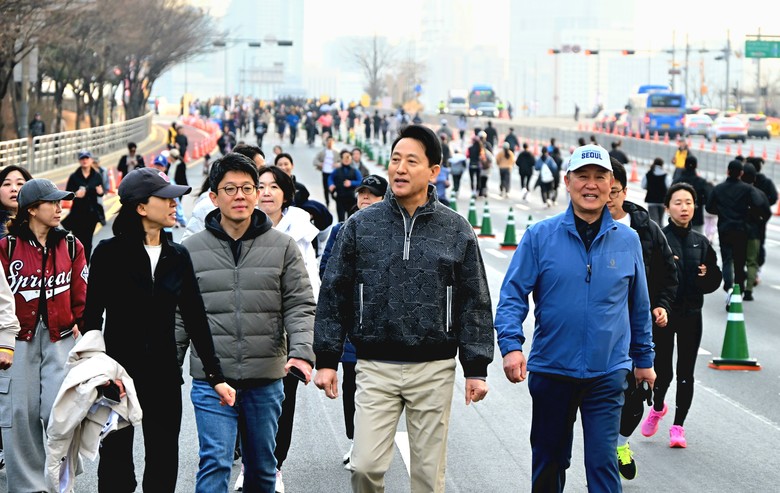 이날 오 시장은 코스를 시민들과 함께 걷고 도착 지점에서 참가 시민들의 완주를 격려했다. 이어 여의도공원 문화의 마당에 마련된 ‘찾아가는 서울체력장’에 참여했다.