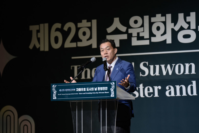 26일 수원컨벤션센터에서 열린 ‘자매우호도시의 날 환영만찬’에서 이재준 수원시장은 해외 7개국 8개 도시 대표, 포항·제주·거제·봉화군 등 국내 4개 도시 대표, 멕시코, 콜롬비아 등 4개국 주한 대사 등을 만나 환영인사를 했다.