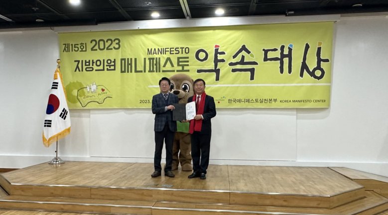 [부산 세계타임즈=이용우 기자] 부산광역시의회 기획재경위원회 이승우 의원(국민의힘, 기장군2)은 22일 한국매니페스토실천본부가 주관하는 “2023 지방의원 매니페스토 약속대상” 좋은 조례 분야 우수상을 수상했다.