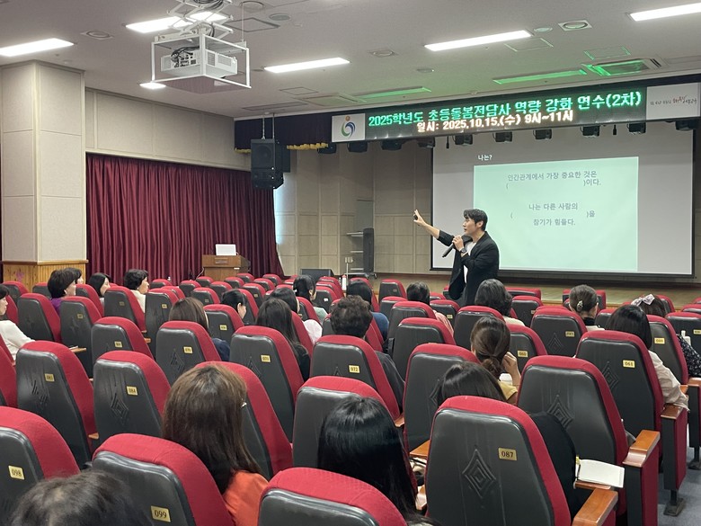 이번 연수는 돌봄교실 현장의 소통을 개선하고 초등돌봄전담사의 심리적 회복탄력성을 높여 안정적인 돌봄 환경을 조성하기 위해 마련됐다.