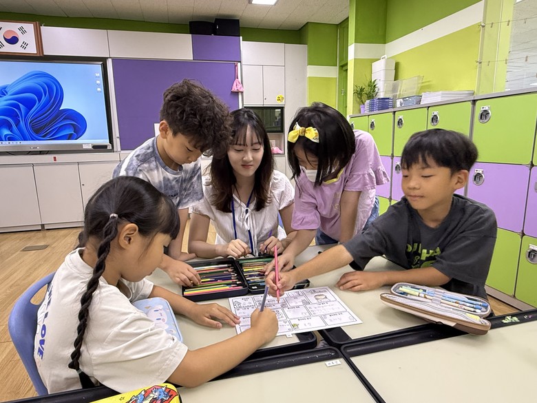 교육 멘토링 첫날인 8월 21일(목)에는 1~6학년 학생들이 ‘창의융합한마당 부스 체험 활동’에 참여하여 다양한 교과가 융합된 다문화, 마음건강 및 발명 부스에서 탐구 활동을 즐겼다. 부스 체험 외에도 2, 4, 5, 6학년은 대학생 멘토와의 첫 만남과 협력 수업을 함께 진행하며, 대학생과의 교류 속에서 새로운 학습 동기를 얻는 시간이 되었다.