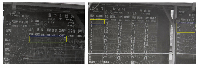 전설의 명마 ‘에이원(암말, 5세)’이 출전했던 1970년 8월 30일 7경주의 출마표(좌)와 배당률(우)