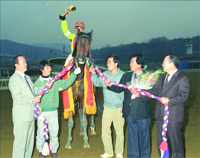 1989년 뚝섬시대가 막을 내리고 경마장이 과천으로 이전하면서 새로운 스타말들이 등장했다. 먼저 1987년부터 1994년까지 무려 8년간 경주로를 달렸던 경주마 ‘차돌’이 있다. 520㎏의 거구를 자랑했던 ‘차돌’은 등장하자마자 첫해에만 12전 8승을 올리며 두각을 나타냈는데 언제인가부터 경주 중 펜스 쪽으로 파고드는 나쁜 습관으로 슬럼프를 겪었다. 그런데 천우신조의 기회가 생긴다. 1989년 여름 때마침 경마장이 이전하며 진로 방향이 반대로 바뀐 것이다. 그해 파죽지세로 달린 ‘차돌’은 그랑프리를 비롯해 대상경주를 3개나 휩쓸었다. 지금은 26개의 대상경주가 있지만 당시는 연 7회밖에 없었던 시절이기에 더 대단한 기록이라 할 수 있다.