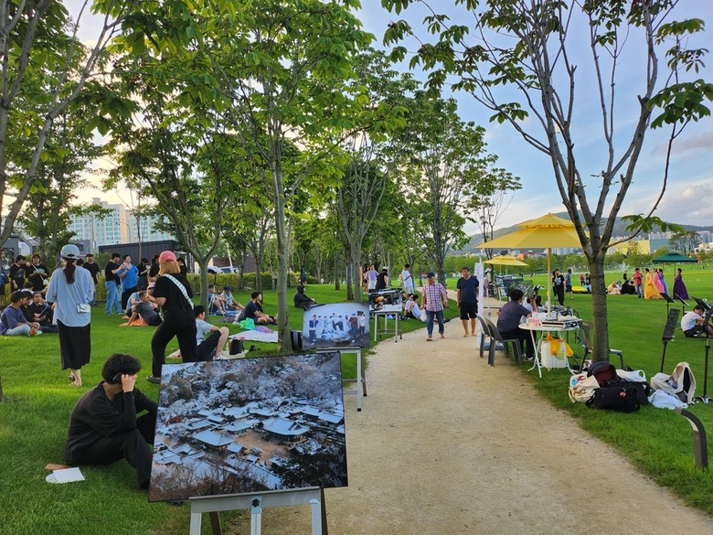 | ▲ 지난해 7월 28일, 시민들이 오천그린광장에서 열린 2024 정원예술제를 자유롭게 즐기고 있다 |