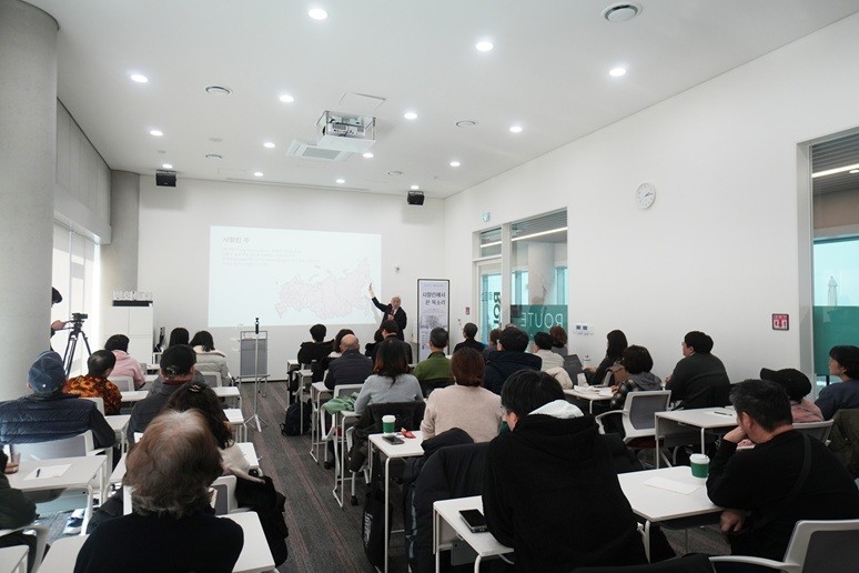 강연자로 나선 박승의 씨는 사할린 지역에 형성된 한인 사회의 역사와 이동의 과정, 그리고 그 속에 녹아있는 개인의 기억을 진솔하게 풀어냈다. 특히 강제 이주와 귀환이라는 역사의 흐름이 개인의 삶에 어떤 흔적을 남겼는지, 그리고 그 삶이 오늘날 파주에서의 일상과 어떻게 이어지고 있는지를 전하며 청중에게 깊은 울림을 주었다.