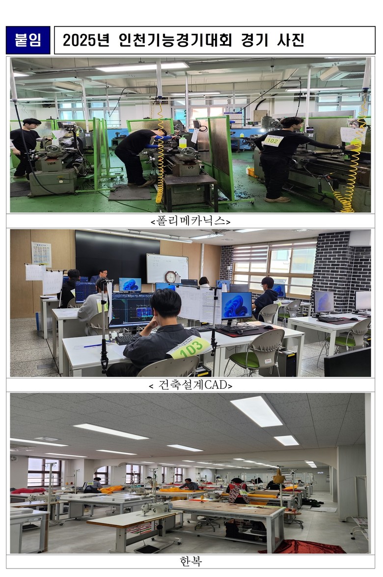 입상자에게는 소정의 상금이 지급되며, 국가기술자격법에 따라 해당 직종의 기능사 시험이 면제된다. 아울러 오는 8월 인천에서 개최되는 ‘2026년 제61회 전국기능경기대회’에 인천시 대표로 참가할 수 있는 자격이 부여된다.