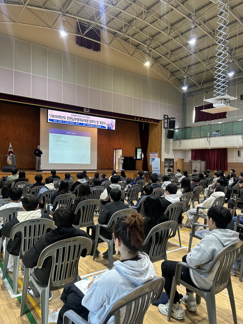 같은 날 인천남중학교 강당에서 열린 남부영재교육원 개강식에는 신입생과 2학년 재학생, 학부모 등 100여 명이 참석했다. 이날 행사는 지도교사 소개와 교육과정 안내 등 교육원 운영 방향을 공유하는 한편, 경희대학교 우주과학과 김성수 교수의 ‘항공우주 열린 특강’을 통해 현실로 다가온 미래 우주 기술의 비전을 제시하는 뜻깊은 시간이 되었다.