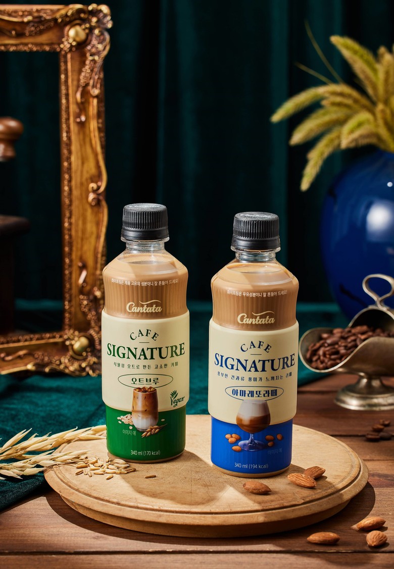 칸타타 카페 시그니처는 특별한 맛과 디자인을 선호하는 소비자 특성에 맞춰 카페의 이색적인 음료를 언제, 어디서든 간편하게 즐길 수 있도록 기획됐다. ‘아마레또 라떼’, ‘오트브루’ 총 2종이며, 커피 전문점의 포장 컵 모양을 본뜬 340mL 용량의 새로운 패키지를 적용했다.