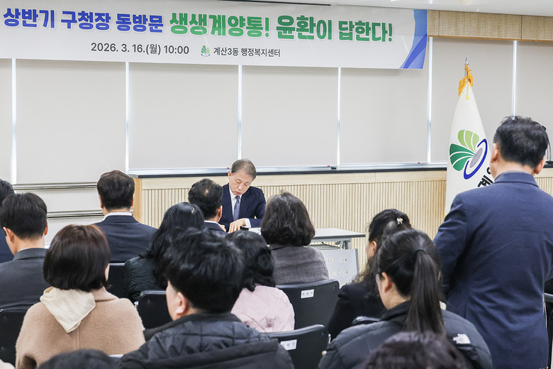 [계양구 세계타임즈=심하린 기자] 인천광역시 계양구(구청장 윤환)는 지난 3월 12일부터 19일까지 12개 동을 순회하며 진행한 2026년 상반기 구청장 동방문 ‘생생계양통 윤환이 답한다’를 성공적으로 마무리했다.
