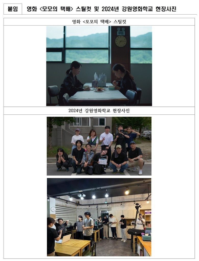‘강원영화학교’ 사업은 강원문화재단 부설 강원영상위원회가 강원특별자치도 내 열악한 영상제작 교육 인프라 환경 속에서도 2019년부터 영상분야 전문인력 양성을 목적으로 추진해 오고 있는 사업이다.