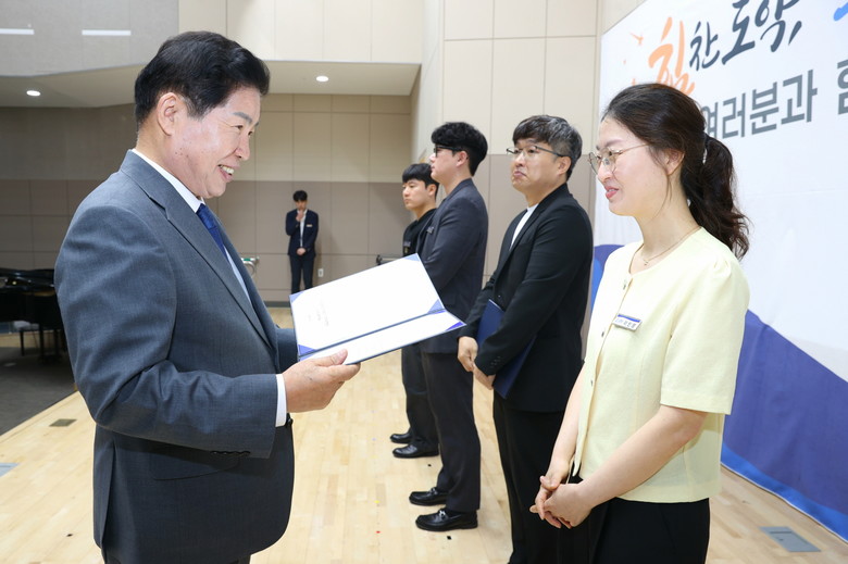 우수공무원으로는 ▲설계해석을 통해 도서지역 식수 공급 기반을 마련한 상하수도사업소 김지훈 주무관 ▲소아청소년과 전문의사 채용으로 필수 의료서비스 해소에 앞장선 보건소 김황오 주무관이 선정됐다.