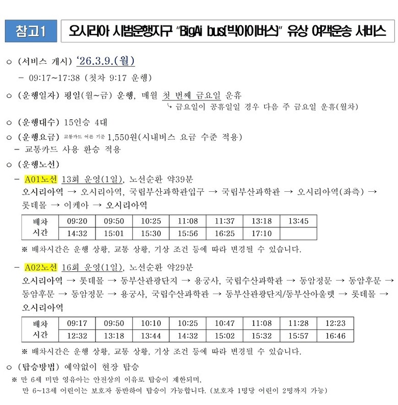 모든 차량에는 안전관리요원이 탑승해 돌발 상황에 대비하고, 운행 전·중·후 점검과 실시간 모니터링을 통해 위험 요소를 사전에 차단할 계획이다.