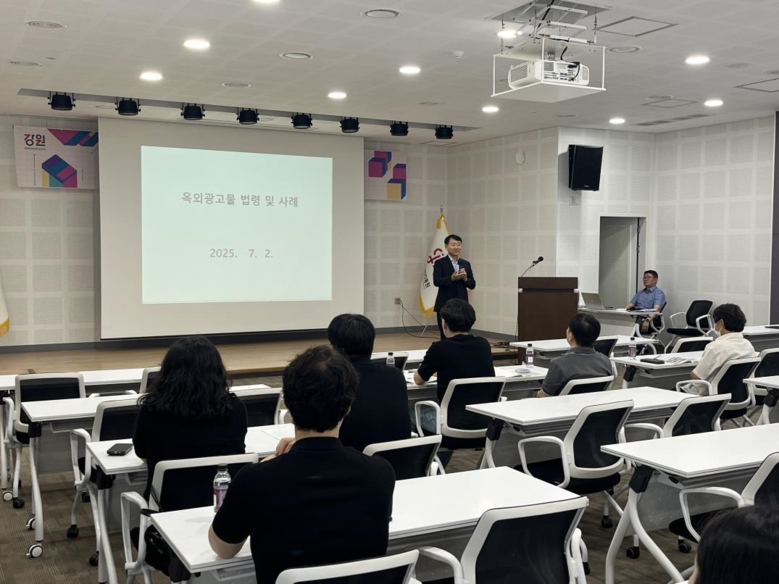 [강원도 세계타임즈=김민석 기자] 강원특별자치도(도지사 김진태)는 옥외광고물에 대한 올바른 인식을 확산하고, 관련 업무를 담당하는 공무원의 직무역량 강화를 위해 7월 2일(수), 춘천 강원디자인진흥원에서 2025년 「점프-업(Jump-up)! 옥외광고물 교실」을 개최했다고 밝혔다.