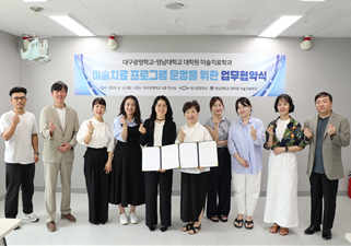 [대구 세계타임즈=한윤석 기자] 대구광명학교(교장 서혜연)은 6월 12(목) 10시 대구광명학교 5층 연수실에서 영남대학교 대학원 미술치료학과(학과장 최선남)와 시각장애학생의 정서 지원을 위한 미술치료 프로그램 업무협약을 체결했다.
