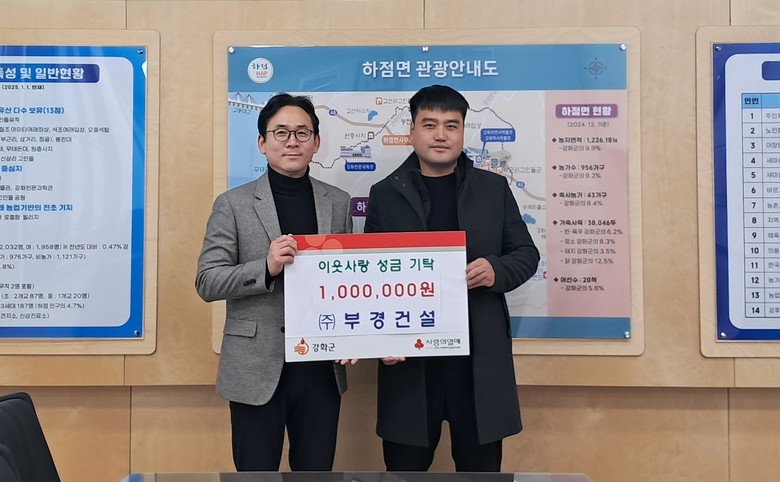 이번 성금은 부경건설이 그동안 지역 주민들에게 받은 성원에 보답하고자 마련한 것으로, 인천사회복지공동모금회를 통해 하점면에 기탁됐다.