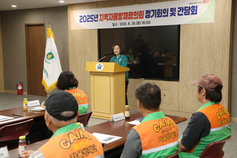 - 박희영 용산구청장 “구민 안전, 현장 목소리에서 답을 찾겠다” [용산구 세계타임즈=이장성 기자] 서울 용산구(구청장 박희영)는 지난 8월 26일 ‘2025년 지역자율방재협의회 정기회의 및 간담회’를 개최했다. 이번 회의에는 박희영 구청장을 비롯한 신규 단장, 동대표, 우수 단원 등 총 22명이 참석했다.