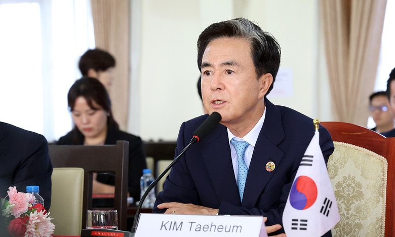 라오스를 방문 중인 김태흠 지사는 18일 비엔티안에 위치한 노동사회복지부 접견실에서 포사이 사아손 장관을 만났다.