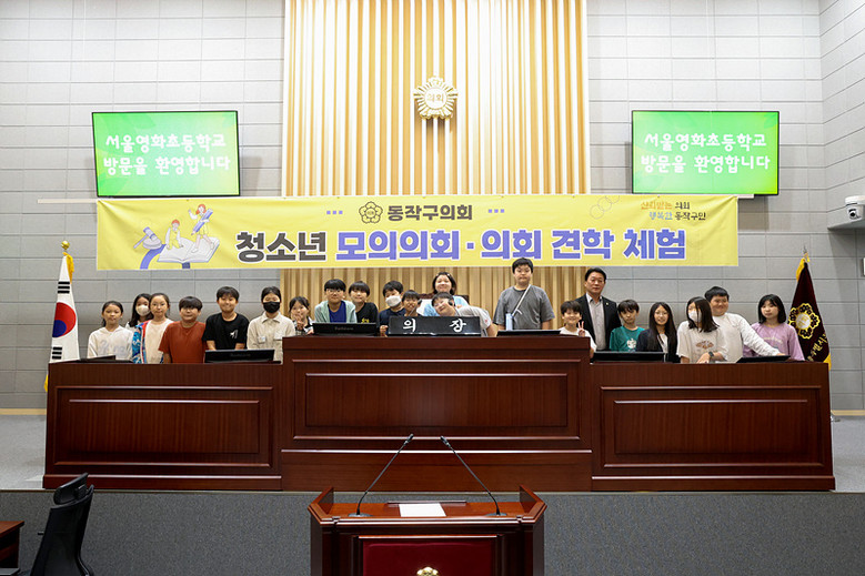 프로그램은 의회 소개 영상을 통한 사전 교육을 시작으로, 본회의장에서 모의의회를 체험한 후 의회 시설을 견학하는 순으로 진행됐다. 특히 모의의회에서는 ‘서울특별시 동작구 깨끗하고 위생적인 학교 만들기에 관한 조례안’을 안건으로 상정해 찬반 토론과 전자투표를 직접 진행하며 의사결정 과정을 체험했다.