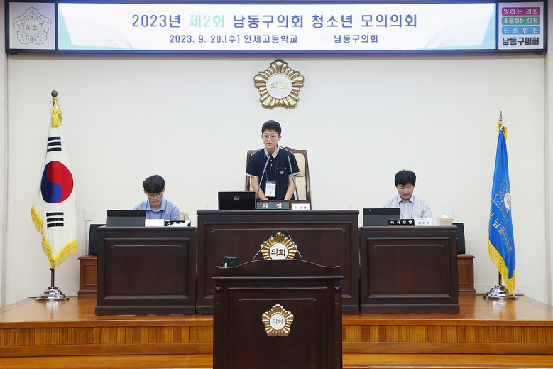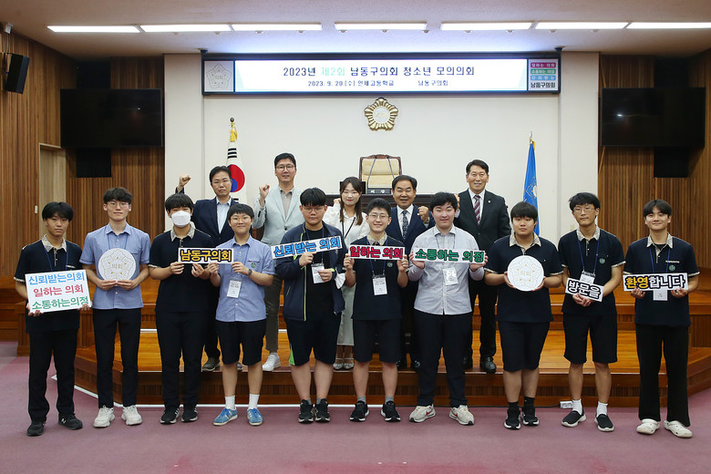 [남동구 세계타임즈=심하린 기자] 남동구의회(의장 오용환)는 지난 20일 본회의장에서 인제고등학교 학생들을 대상으로 청소년 모의의회를 개최했다.
