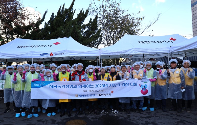 NH농협생명의 김장나눔 행사는 2013년부터 진행되어 오고 있다. 11년째 이어진 나눔행사는 우리농산물로 직접 담근 김장김치를 지역사회 소외계층에 전달하는 사회공헌행사로 농협생명은 대한적십자사와 함께 매년 김장나눔 행사,사랑의 빵 만들기 봉사 등을 실시하고 있다.