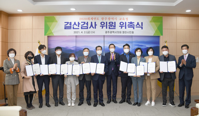 [광주=세계타임즈 이채봉 기자] 광주광역시의회(의장 김용집)는 2일 시의회 대회의실에서 광주시와 광주시 교육청을 대상으로 하는 2020회계연도 결산검사위원 위촉식을 개최했다.