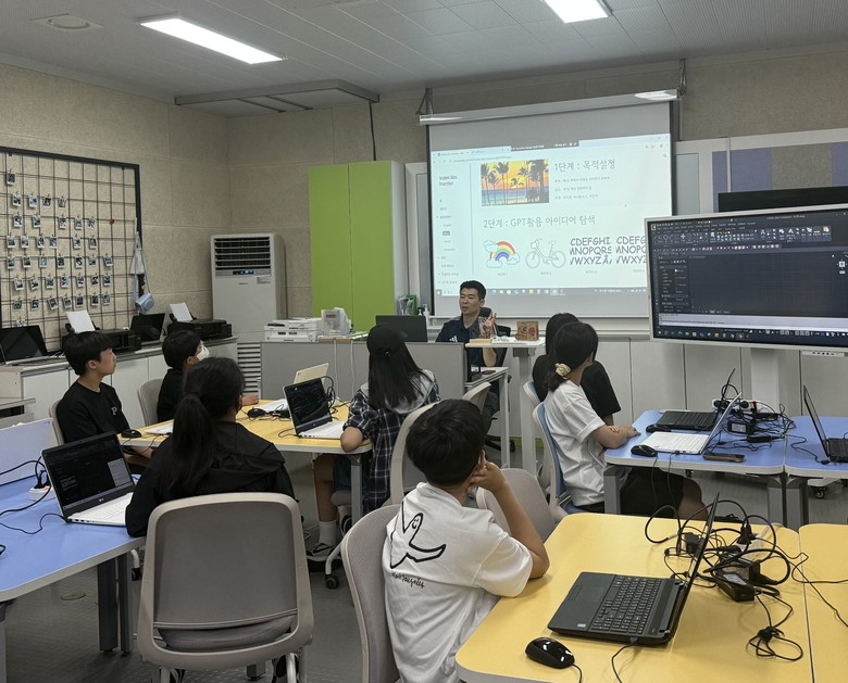 중등반은 ▲발명 기법을 적용한 3D프린팅 발명품 제작 체험 ▲목공 발명품 설계 및 메이킹 ▲도면 프로그램을 활용한 나만의 굿즈 설계 ▲레이저 조각기를 활용한 나만의 굿즈 커스텀 등 4개 과정으로 운영돼 학생들이 다양한 장비를 다루며 아이디어를 현실로 구현하는 활동을 했다.