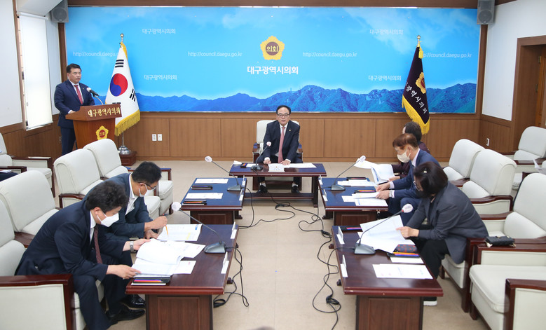 [대구 세계타임즈=한성국 기자] 대구시의회는 10월 21일(금) 14시 30분 시의회 2층 회의실에서 ‘확대의장단 회의’를 열고 대구시와 대구교육청의 2022년 제3차 추경 및 2023년 본예산 주요 편성 현황 및 신규 사업에 대한 보고를 받고 질의응답 시간을 가졌다.