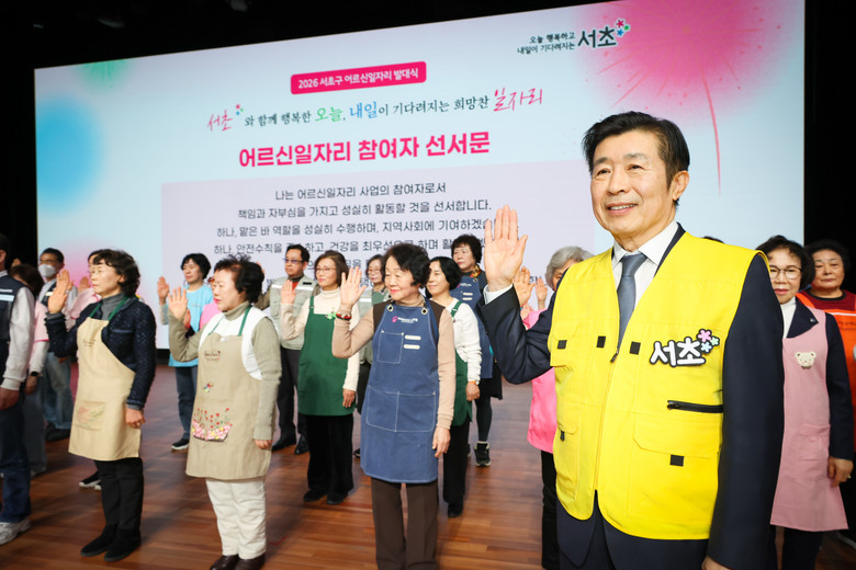 [서초구 세계타임즈=이장성 기자] 서울 서초구(구청장 전성수)가 5일(목) 15시 서초문화예술회관 아트홀에서 올 한 해 활동할 어르신일자리 참여자들의 사기 진작과 자긍심을 고취하기 위해 ‘2026년 어르신일자리 사업 발대식’을 개최했다고 밝혔다.