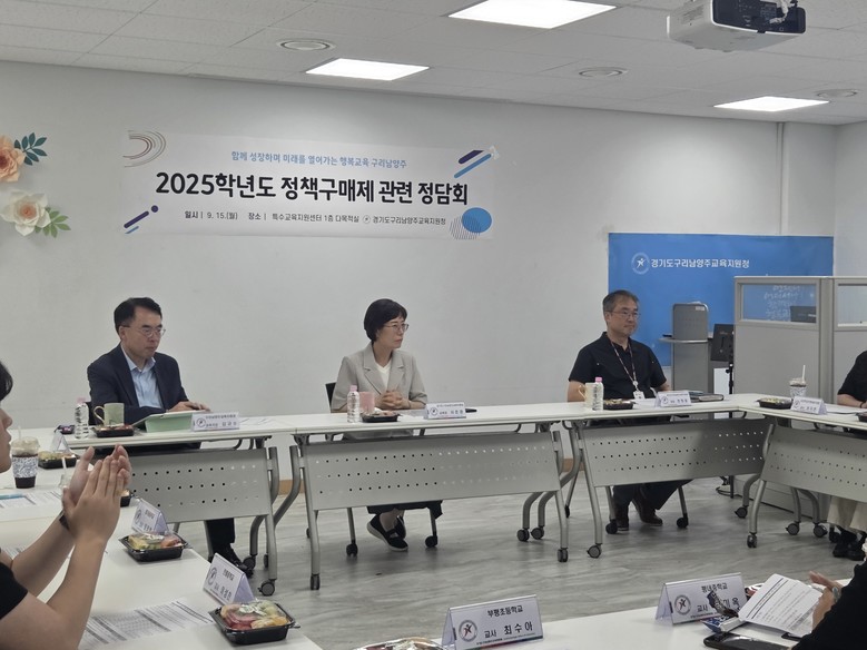 [남양주시 세계타임즈=송민수 기자] 구리남양주교육지원청(교육장 서은경)은 15일 구리남양주교육지원청 특수교육지원센터 1층 다목적실에서 ‘2025 정책구매제 정책 채택 교원 정담회’를 개최하였다.