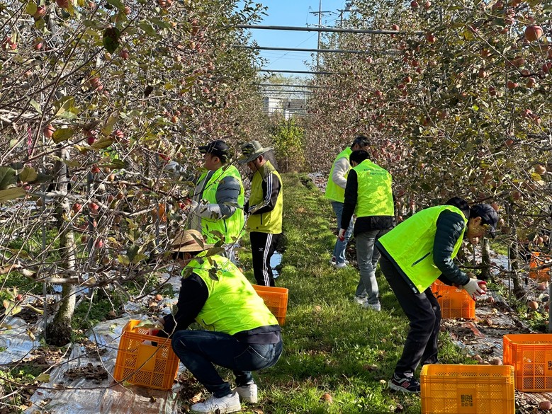 여신심사부문 임직원들은 농가를 방문하여 사과 수확작업 및 낙과 정리·영농자재 정비·반사필름 수거·동면기 준비를 위한 가지치기 작업 등을 하며 구슬땀을 흘렸다.