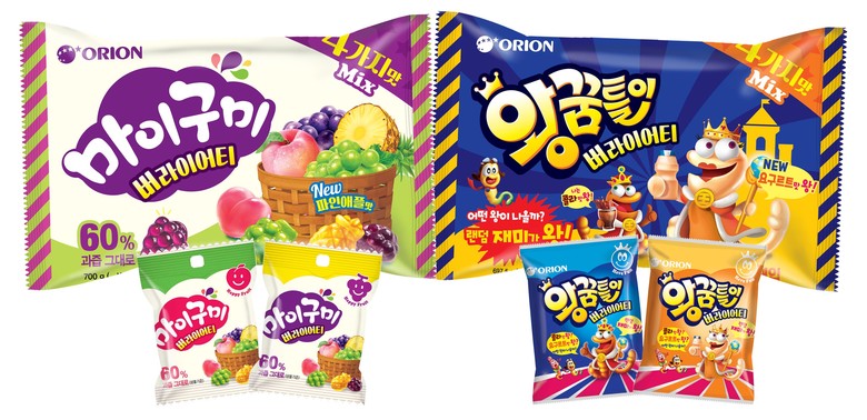 마이구미 버라이어티 팩은 다양한 맛을 동시에 즐기길 원하는 소비자 의견을 반영해 기존 포도, 청포도, 복숭아에 파인애플 맛까지 한 봉지에 담았다. 왕꿈틀이 버라이어티 팩은 오렌지, 복숭아 맛 미니꿈틀이와 함께 소포장마다 콜라 또는 요구르트 맛 왕꿈틀이를 무작위로 넣어 특유의 펀(fun) 콘셉트를 한층 강화했다. 소포장한 젤리 25개를 담은 패키지로 취식 편의성이 높아 아이들 간식이나 가족, 친구 등과 부담 없이 나눠 먹기에 좋다.