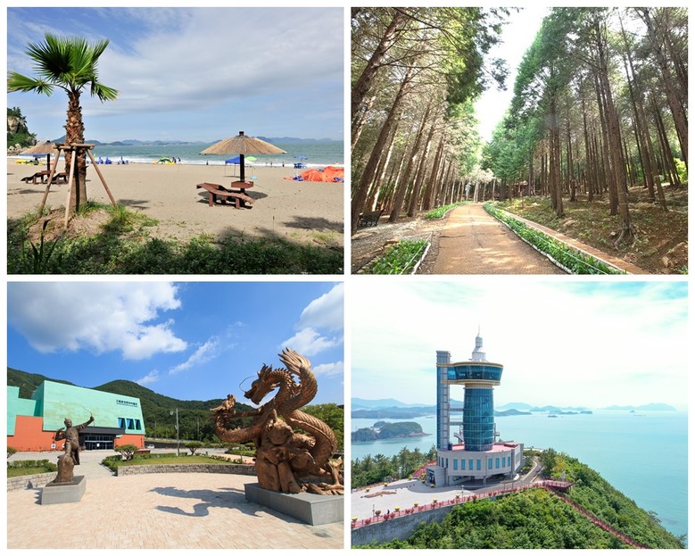 | ▲ 왼쪽 위부터 남열해돋이해수욕장, 팔영산 편백 치유의 숲, 고흥분청문화박물관, 고흥우주발사전망대 |
