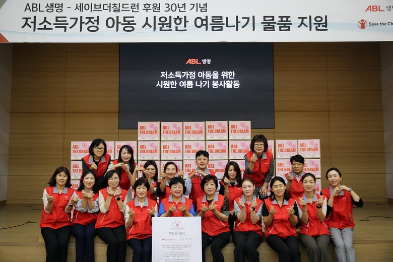 이 날 FC실 임직원 및 동부지역단과 서부지역단 FC로 구성된 봉사단은 아이들이 건강하고 시원하게 여름을 날 수 있도록 인견 이불, 우산, 선풍기, 선크림, 각종 학용품 등을 담은 ‘ABL THE DREAM 상자’를 직접 제작 및 포장하는 봉사활동을 진행했다. 이와 함께 후원금 1,000만원을 세이브더칠드런에 기탁했다.