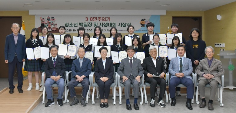 [대전 세계타임즈=이채봉 기자] 대전광역시 3·8민주의거기념관이 주최하고, 대전광역시교육청·대전지방보훈청·사)3·8민주의거기념사업회가 후원한‘3·8민주의거 청소년 백일장 및 사생대회’시상식이 10월 17일 3·8민주의거기념관 강당에서 개최됐다.