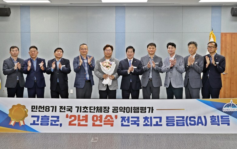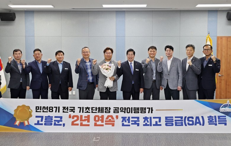 [고흥군 세계타임즈=우덕현 기자] 고흥군(군수 공영민)은 한국매니페스토실천본부에서 발표한 ‘2025년 민선 8기 전국 기초단체장 공약이행 및 정보공개평가’에서 공약이행 평가에서 지난해에 이어 ‘2년 연속’ 전국 최고 등급(SA)을 획득하는 쾌거를 이뤘다고 16일 밝혔다.