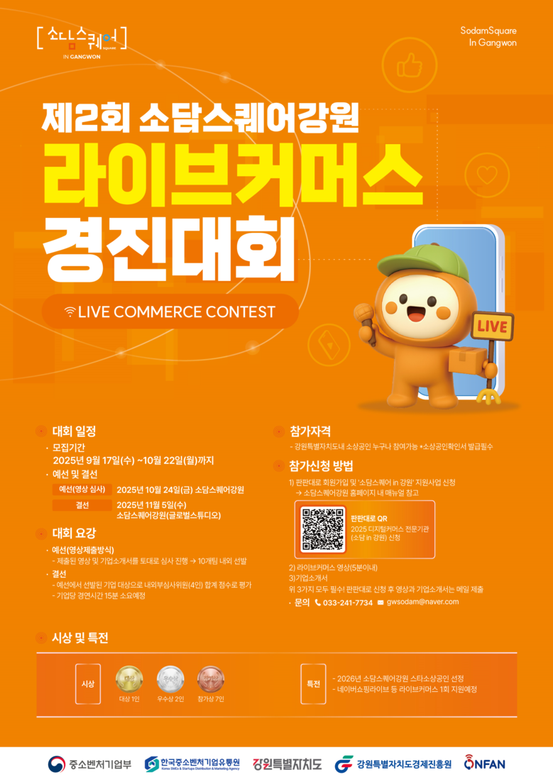 수상 소상공인에게는 소담스퀘어 강원에서 제공하는 다양한 혜택이 주어진다. 주요 혜택은 ▲2026년 「스타 소상공인」 선정 및 디지털 전환 관련 마케팅 지원 ▲네이버 쇼핑라이브 ▲강원더몰 연계 라이브커머스 기회 등이다.