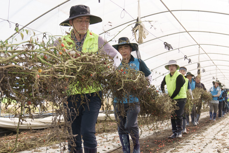 지난 28일 충남 부여군 토마토 농가에서 농작물 수거 작업에 참여한 이석용 은행장은“이번 집중호우로 피해를 입은 지역 주민들에게 깊은 위로의 마음을 전하며, 신속한 수해 복구와 고객의 안정적인 일상 회복을 위한 지원 활동을 지속적으로 전개하겠다”고 말했다.