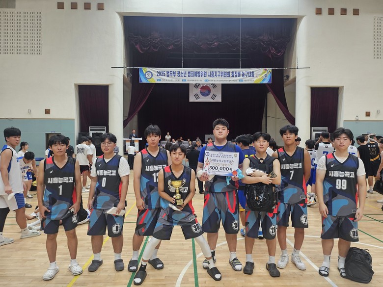 [시흥시 세계타임즈=송민수 기자] 시흥능곡고등학교(교장 이재선)는 지난 8월 23~24일 개최된 『2025 법무부 청소년 범죄예방위원 시흥지구위원회 회장배 농구대회』에서 당당히 우승을 차지하였다. 이번 대회는 청소년 범죄예방과 건전한 스포츠 문화 확산을 목적으로 열렸으며, 지역 내 다수의 중·고등학교가 참가해 열띤 경쟁을 펼쳤다.