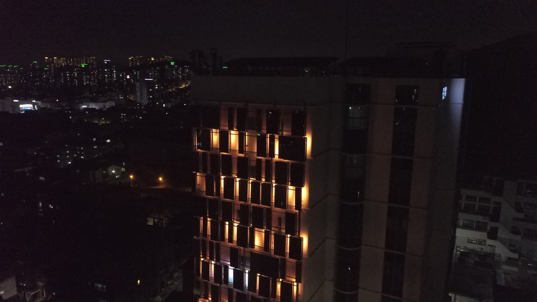 | ▲사회혁신공간 건물 외벽에 설치된 컬러 일체형 태양광 패널(BIPV) 야간 모습.(사진=경기문화재단) |