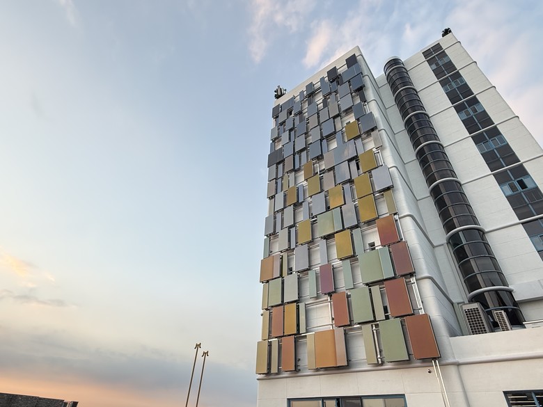 | ▲사회혁신공간 건물 외벽에 설치된 컬러 일체형 태양광 패널(BIPV).(사진=경기문화재단) |