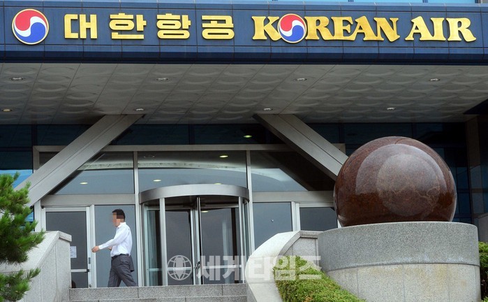 경찰이 대한항공 본사에 대한 압수수색을 진행한 7일 오후 서울 강서구 대한항공 본사 입구에 직원이 지나가고 있다. 경찰청 특수수사과는 이날 오전 9시부터 낮 12시까지 대한항공 본사를 특정경제범죄가중처벌등에관한법률 위반(배임) 혐의로 압수수색했다고 밝혔다. 2017.07.07. 사진제공 뉴시스