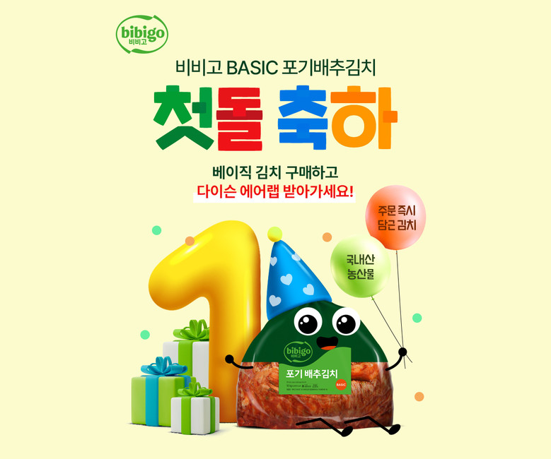 [세계타임즈 = 이현진 기자] CJ제일제당은 ‘비비고 베이직 포기배추김치’의 출시 1주년을 기념해 ‘첫 돌 축하’ 기획전을 진행한다고 18일 밝혔다.
